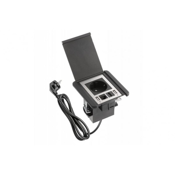 В общем, врезной мебельный удлинитель с крышкой Flip сочетает в себе удобство, элегантность и функциональность, создавая идеальное решение для организации кабелей в вашем помещении. Он привнесет стиль и практичность в ваш интерьер, а его черный цвет придаст ему современный вид.Основные характеристики Удлинитель FLIP, 1xSCHUKO, 2xUSB, 1xLAN, кабель с вилкой 1,5м, чёрный
