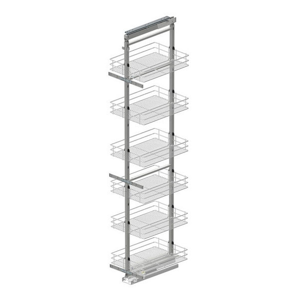 Линия Cargo Maxima имеет регулируемую по высоте раму, что позволяет регулировать высоту корзины в соответствии с вашими потребностями. Вместительные полки, можем обогатить еще одной дополнительной или разделить их перегородками. Возможна установка одной из трех имеющихся направляющих с бесшумным закрыванием, в зависимости от предполагаемого веса. Maxima Line Cargo можно интегрировать с системой Blum SERVO-DRIVE (электрическая передняя система открывания)