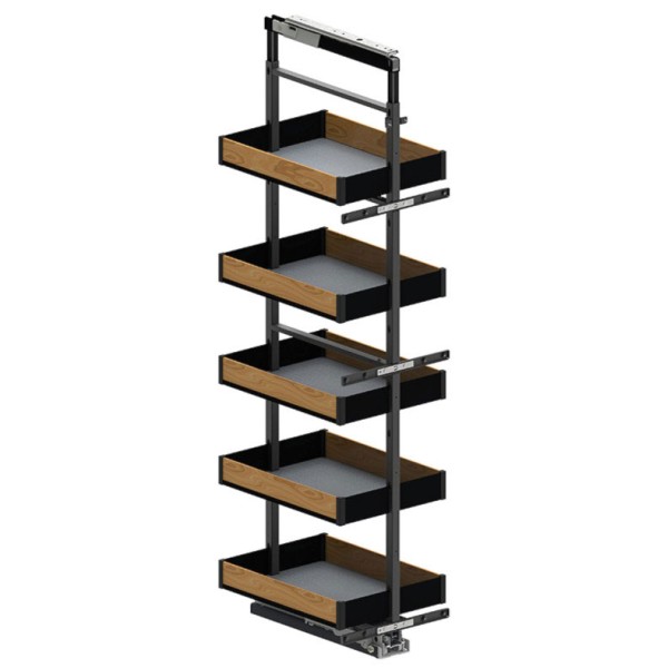 Рама carga maxi REJS из коллекции Maxima PURO идеально сочетает в себе функциональность и современный дизайн. Высота рамы регулируется в диапазоне 1700-1900 мм. Оснащен шестью стальными корзинами, которые передвигаются на направляющих полного выдвижения с функцией плавного закрывания. В комплект входят боковые декоры цвета дуба, которые красиво гармонируют с черными элементами корзины. Кроме того, корзины с плотным дном отделаны противоскользящим ковриком, защищающим от царапин и предотвращающим перемещение предметов. Предложение распространяется на раму, предназначенную для шкафов с внешней шириной 400 мм.