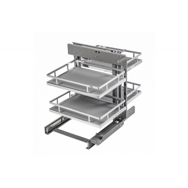 Система хранения GTV CORNER MovixPro представляет собой универсальное решение для кухонных углов, обеспечивая легкий доступ к труднодоступным местам. Выдвижные корзины с антискользящими ковриками гарантируют, что предметы остаются на своих местах при открытии и закрытии. Плоский и элегантный дизайн делает этот Magic Corner привлекательным дополнением к современной кухне, а возможность регулировки положения корзин позволяет оптимально использовать пространство для хранения.