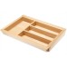 Раздвижная система регулировки ширины позволяет легко адаптировать лоток под размер внутреннего пространства ящика, обеспечивая идеальное использование доступного места. Благодаря четырем отделениям, предусмотренным в дизайне, пользователь может эффективно организовать хранение столовых приборов и кухонных аксессуаров, сохраняя порядок и доступность необходимых предметов.