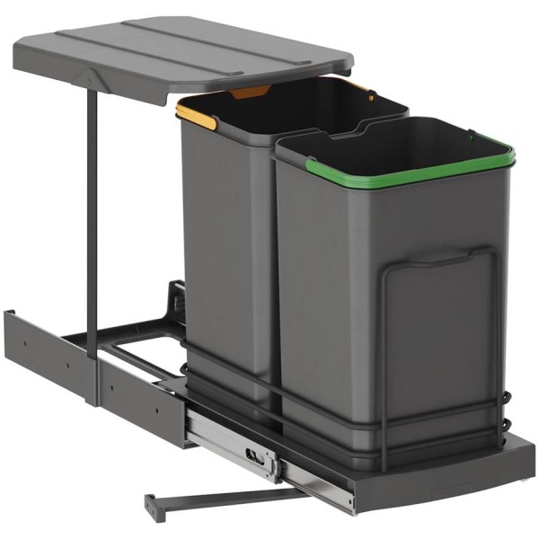 Выдвижное мусорное ведро Starax — это эргономичное решение для сортировки отходов на кухне. Модель оснащена телескопическими направляющими полного выдвижения и двумя контейнерами по 12 литров. Такая конструкция позволяет максимально эффективно организовать пространство внутри кухонного шкафа. Корпус выполнен из качественного графитового пластика с прочной рамой, что обеспечивает долговечность и устойчивость к нагрузкам.
