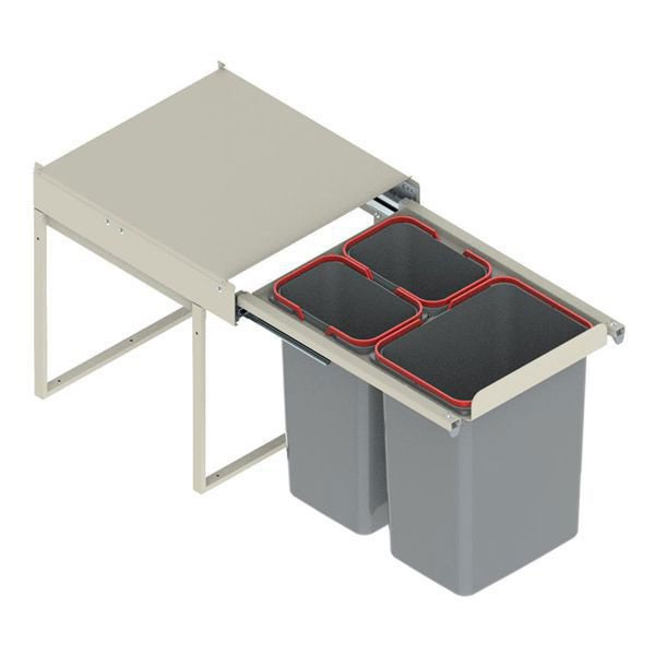 Мусорное ведро Rejs JC606 секция 450-500 (414x505x450) тройное (2x9L/1x20L) WE14.1535.05.549Мусорник, сортировщик для шкафов от 45-50 см. Шкаф можно сделать шире. Направляющая на шарикоподшипниках с полным выдвижением и ...