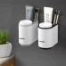 Тримач для зубних щіток MVM з 2 склянками, білий/сірий, що клеиться, ABS пластик, 109х83х128 мм