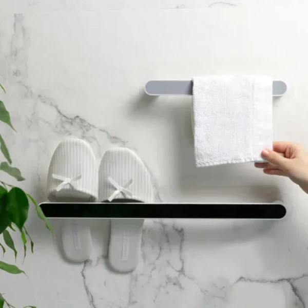 Опис Універсальний тримач MVM 265 мм, що клеиться, білий/сірий для рушників та взуття.