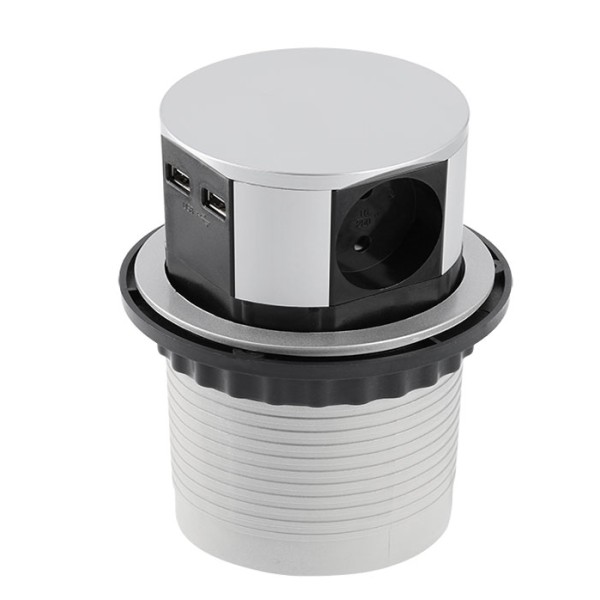 Опис Подовжувач круглий врізний 3 розетки COMFORT (Schucko) 2xUSB 2,4A, дріт 1,5м, алюміній