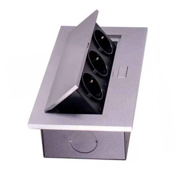 Опис Блок врізний на 3 розетки з підйомною кришкою алюміній