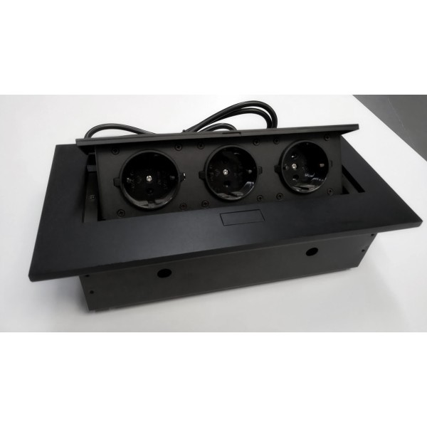 Опис Блок врізний на 3 розетки із підйомною кришкою чорний