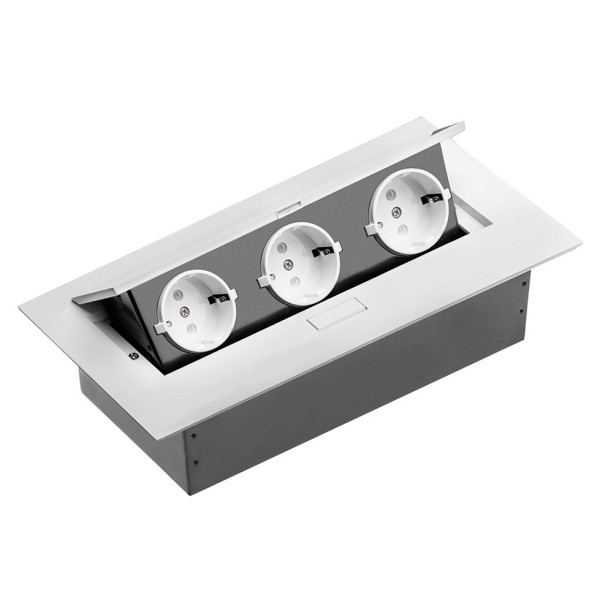 Подовжувач GTV - це практичний пристрій, що дозволяє підключати кілька пристроїв до однієї розетки. Подовжувач можна встановити на робочий стіл, переговорний стіл або кухню. Після натискання на кнопку відкривається панель із трьома розетками із заземленням типу Schuko . Панель можна легко сховати після закінчення роботи, що дозволяє уникнути плутанини заплутаних кабелів, що лежать на поверхні.