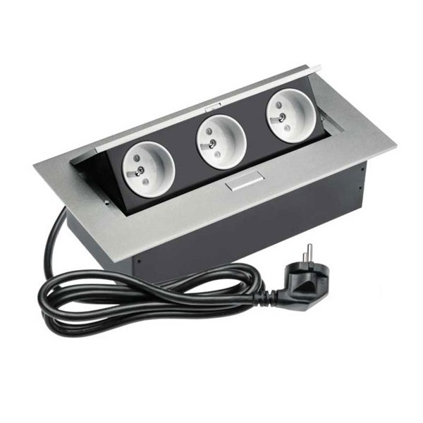 Опис Подовжувач для офісу на 3 розетки із заземленням French алюміній + провід 1,5 метра з вилкою