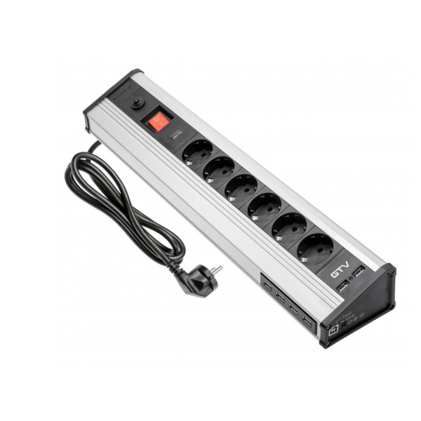 Опис Подовжувач для офісу на 6 розеток, 6 USB, із заземленням алюміній