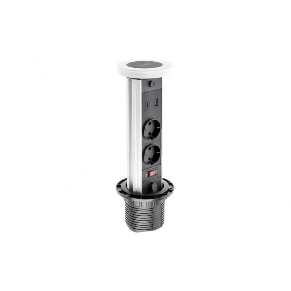 Подовжувач CAMINO від GTV, що вбудовується, - вставляється в стіл, є прикладом ергономіки і мінімалізму. Воно не займає багато місця, тому ідеально підходить для невеликих столів та робочих столів для молоді. Функція нічної лампи особливо сподобається "нічним працівникам". Таке рішення також стане в нагоді на кухні під час приготування їжі. Camino зручний у використанні - досить потягнути його вгору, доки нижня частина не зафіксується. Бездротова зарядка зразком стає вже щось звичайним, і вона також знаходиться в цьому випадку.