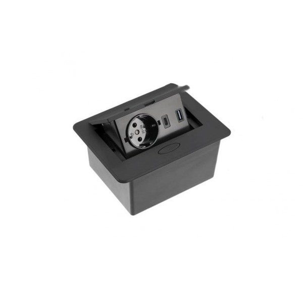 Подовжувач врізний GTV AVARO 1xSCHUKO, USB A+C, кабель 1,5 м, чорний - 11223