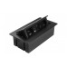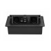 Врезной удлинитель GTV MultiSoft — це універсальне рішення для сучасного офісу, конференц-залу чи домашнього кабінету. Оснащений двома розетками Schuko, двома USB-портами (тип A + тип C), а також інтерфейсами RJ45 (Ethernet) та HDMI, цей модуль дозволяє одночасно підключати електроприлади, заряджати мобільні пристрої, передавати відео- та мережеві сигнали — усе в одному корпусі. Компактна конструкція з чорного пластику і алюмінію монтується врізним способом у стільницю або меблевий щит, забезпечуючи охайний вигляд та економію простору. Кришка приховує роз'єми та захищає їх від пилу і випадкових забруднень. Довжина вмонтованого кабелю — 1,5 м, що дозволяє гнучко під’єднати пристрій до електромережі.