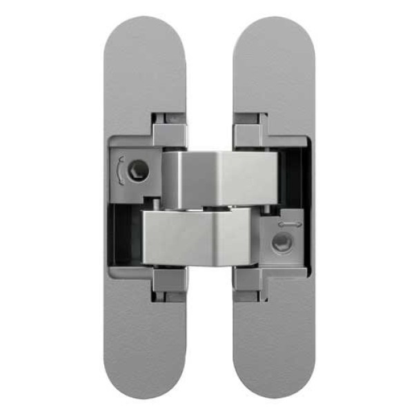 Для міжкімнатних дверей до 40 кг. повністю прихована система шарнірів 3D-регулювання (сторона +/- 1,5 мм, висота +/- 2,5 мм, за глибиною +/- 1,0 мм) матеріал zamak / acetal