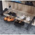 Полиця для взуття VARIANT MULTI Чорний матовий ширина модуля 900 mm глибина 490 - це зручний та простий спосіб зберігання взуття всередині вбиральні. Висувний сітчастий кошик забезпечує необхідну циркуляцію повітря, щоб Ваше взуття залишалося свіжим і сухим. Виготовлена з якісної сталі, полиця доступна у двох кольорах - чорному та білому. Максимальне навантаження полиці складає 35 кг. Ця модель підходить для шаф з мінімальною глибиною 490 мм. Висота кошика складає 160 мм. Важливо врахувати, що напрямні повного висування з доводчиком мають бути придбані окремо (див. рекомендовані товари). Матеріал полиці – металевий пруток. Розміри полиці відповідають ширині корпусу шафи 900 мм та глибині кошика 490 мм. Полиця для взуття VARIANT MULTI - ідеальне рішення для організації зберігання взуття всередині Вашої шафи.