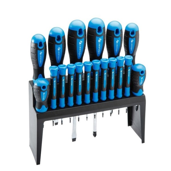 Набір містить 18 викруток Виготовлені із високоякісної легованої сталі S2 Стійкі до інтенсивних навантажень Намагнічений стрижень полегшує роботу Двокомпонентна ергономічна рукоятка зі спеціальною профільованою протиковз...