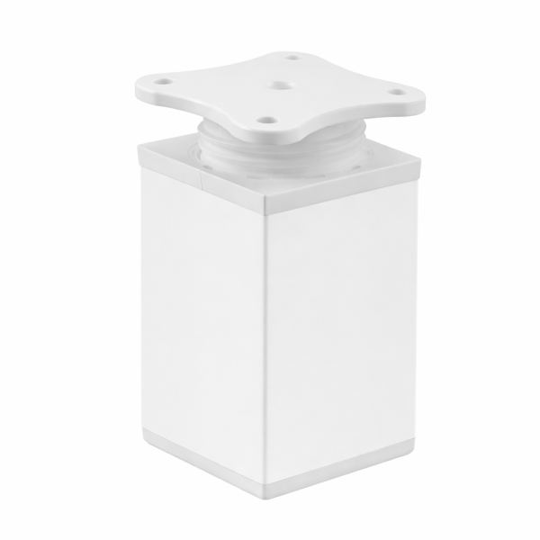 Мебельна ніжка GTV DAK-27 висотою 60 мм — квадратна опора 40×40 мм з алюмінію з пластиковою основою. Білий колір дозволяє використовувати її з кухонними та ванними модулями, світлими тумбами, комодами та іншими корпусними виробами.