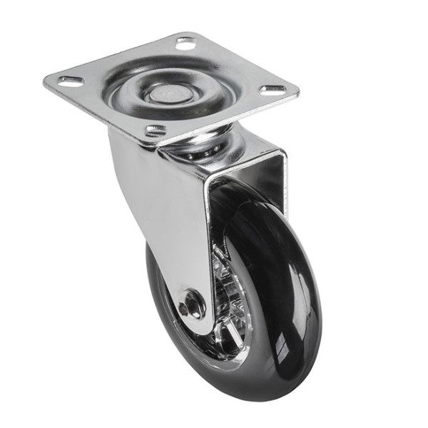 Поворотне колесо GTV ідеально підходить для медичного обладнання, виставкових шаф, шкільних, комп'ютерних та офісних меблів, а також у складському та торговому обладнанні. Перевагою колеса є його тиха робота. Матеріал, з якого виготовлено колесо, не бруднить і не дряпає поверхню. Діаметр колеса 75 мм, висота 90 мм