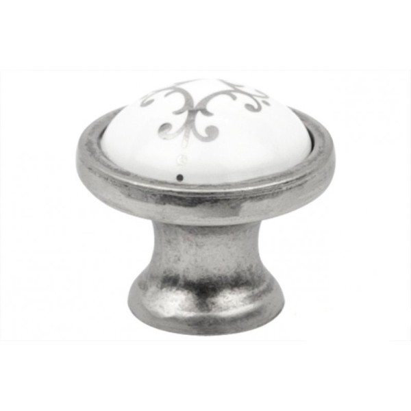 Ручка кнопка Virno Azure WTC A19 срібло 100R від виробника Virno Style – це стильний елемент інтер'єру в ретро-стилі. Ручка виготовлена з металу та кераміки. Вона має гарну білу керамічну вставку зі срібним візерунком, я...