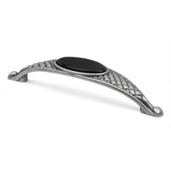 Ручка скоба Virno Azure BLC A0 срібло 100/128 – стильний елемент декору для кухонних меблів або меблів у вінтажному стилі. Ручка виконана в ретро стилі, має чорну керамічну вставку та металевий корпус, пофарбований у срі...