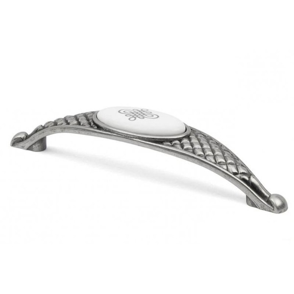 Ручка скоба Virno Azure WTC A17 срібло 100/128 – це стильна накладна ручка в ретро-стилі від виробника Virno Style. Вона виконана з металу та кераміки, що забезпечує міцність та надійність при використанні. Міжцентрова відстань становить 128 мм, що дозволяє легко встановити ручку на будь-які двері. Колірна гама представлена сріблом та білим кольором, а на білій керамічній вставці є витончений сріблястий візерунок. Ручка має рельєфну поверхню з ромбоподібним рельєфом, що надає їй додаткового шарму та вишуканості. Ця ручка скоба Virno Azure WTC A17 срібло 100/128 – чудовий вибір для створення інтер'єру в провансальському стилі.