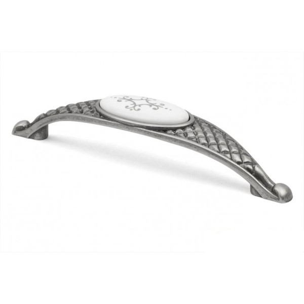 Дизайн ручки в стилі ретро привертає увагу своєю оригінальністю та вишуканістю провансу. Біла керамічна вставка зі срібним візерунком надає ручці особливої особливості. Ручка виконана в рельєфному стилі з ромбоподібним рельєфом, що додає ще більше елегантності та стилю. Ручка скоба Virno Azure WTC A19 срібло 100/128 – це чудовий вибір для тих, хто цінує красу та якість.