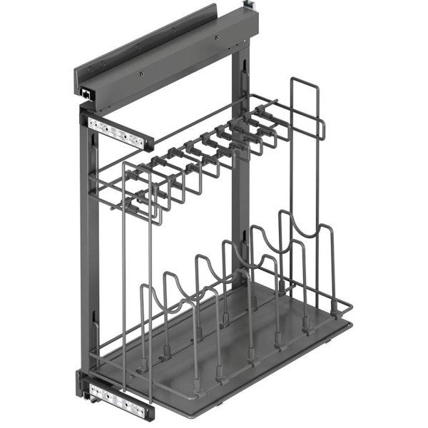Карго для сковорідок Starax, антрацит, 450 мм, злівим бічним кріпленнямта направляючими Tandem Blum – це зручна висувна система зберігання, призначена для компактного розміщення та зберігання кухонного начиння, у тому числі сковорідок та кришок. Дана модель оснащена якісними напрямними Tandem Blum з плавним закриванням, що забезпечує тиху та м'яку роботу механізму.