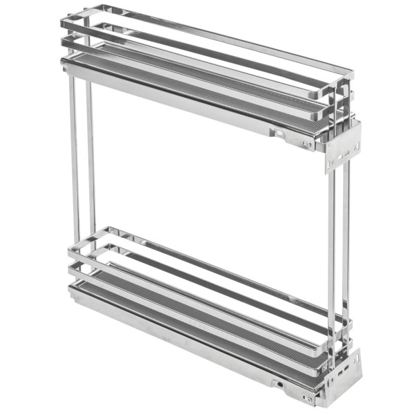 Двохрівневий боковий кошик MOVIX PRO 150 мм (пляшечниця) Cargo без напрямних, хром (плоский прут) - висувна система зберігання, що встановлюється в нижній модуль кухонного гарнітура. Кошик виготовлений так, що в нього зручно ставити пляшки з напоями та рідкими продуктами харчування, тому він також називається пляшечкою.