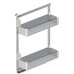 кошики із високоякісної сталі білого матового кольору; 2 прозорі скляні декори в комплекті; у комплекті ліва або права ходова частина; для шафи завширшки 150 мм; допустиме навантаження всієї системи до 12 кг; можливість регулювання висоти корзин;