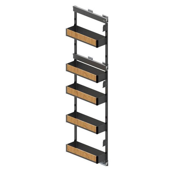 Великий бічний карго кошик REJS з колекції Maxima PURO стане чудовим доповненням сучасної кухні. Карго обладнана п'ятьма сталевими кошиками, що кріпляться до рами. Рама переміщається на напрямних повного висування з функцією плавного закривання. У комплект також входять п'ять декоративних елементів кольору дуба, які чудово гармоніюють із чорними елементами кошика. Крім того, кошики з жорстким дном оброблені протиковзним килимком, що захищає від подряпин і запобігає переміщенню предметів. Кошик призначений для шаф із зовнішньою шириною 150 мм. Пропозиція поширюється на версію кошика із правостороннім кріпленням.