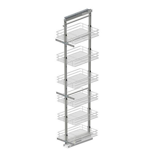 Кошик кріпиться на спеціальні напрямні (продаються окремо, див рекомендовані товари) , що забезпечує легкий доступ до предметів, що зберігаються. Регульована висота 1700-1900 мм робить його відповідним для різних кухонних шаф. Хромована обробка надає кошику сучасного і привабливого вигляду, а міцна сталева конструкція гарантує, що вона прослужить довгі роки. Можливість додавання додаткової полиці значно збільшує місткість.