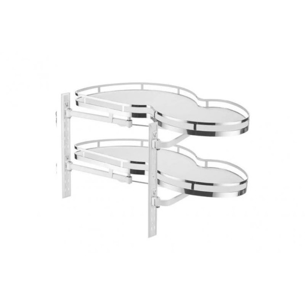 Елегантний та функціональний кошик для кухонного гарнітура, виконаний у стильному хромованому кольорі. Призначена для встановлення у нижній модуль кухні розміром 1000 мм. Конструкція кошика включає дві полиці, розміщені на різних рівнях, що забезпечує зручність використання та оптимальне розподілення простору.