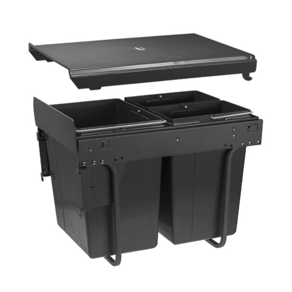 Відро для сміття підходить для шафи шириною не менше 400 мм і має загальний об'єм 40 літрів. (відра 1 х 20 літрів та 2 х 10 літрів)