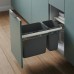 Висувні контейнери з центральною кришкою поміщені в механізм із металевою напрямною повного висування, завдяки чому кошик переміщається легко та точно. При відкритті кришка залишається всередині шафи. Каркас контейнера кріпиться до днища шафи за допомогою шурупів.