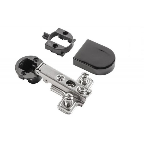 Комплект включає декоративну заглушку для естетичного вигляду та монтажну планку для фіксації скляного фасаду. Петля витримує інтенсивне використання, ідеально підходить для меблів у житлових та комерційних приміщеннях.