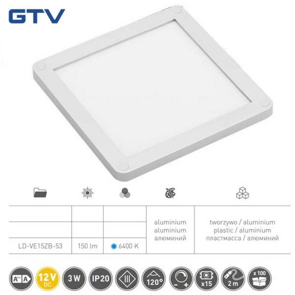 Світильник LED VEGAS 100x100, холодний білий, кабель mini amp 2m, алюміній - LD-VE15ZB-53