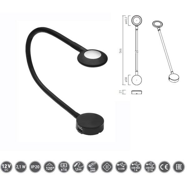 Документація Світильник CHICAGO (LED з роз'ємом USB, Чорний)