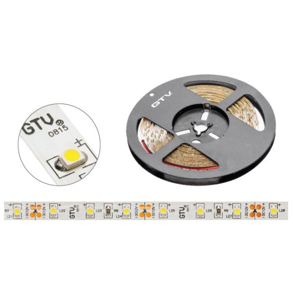 Світлодіодна стрічка GTV. Світлодіодну стрічку можна використовувати для декоративного підсвічування шаф-купе, дзеркал, сходів, навісних шаф та підвісних стель. Стужку зі ступенем захисту IP20 можна встановлювати лише у приміщеннях з обмеженою вологістю. Її можна розрізати на відрізки через кожні 2,5 см. Вона оснащена стрічкою, що самоклеїться, що значно полегшує монтаж.